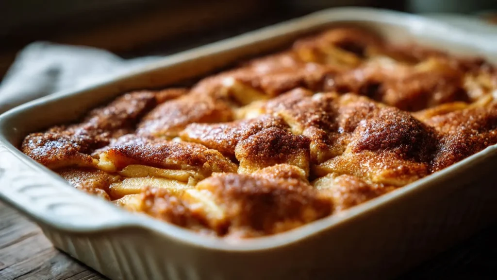 What makes this dessert so special is its texture and aroma. The apples bake into a soft, juicy filling while the cake mix and cinnamon topping form a buttery, slightly crisp layer on top. Every spoonful tastes like apple pie and snickerdoodle cookies combined into one irresistible dessert. It’s perfect for family gatherings, holidays, potlucks, or a relaxed weekend treat.