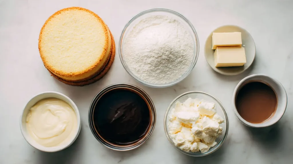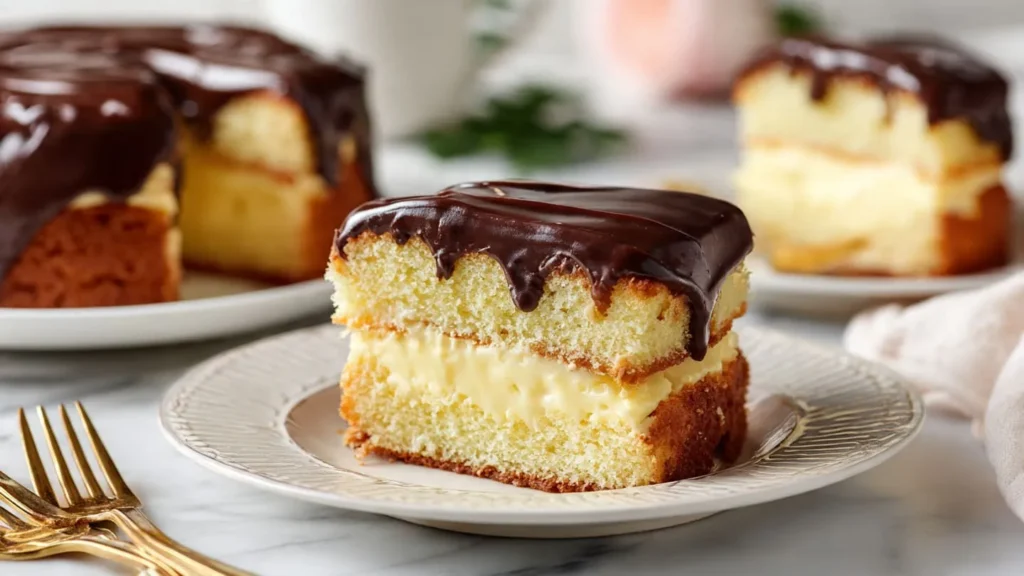 To prepare this cake, you’ll need mixing bowls, a whisk, a saucepan for the custard or glaze, a knife for slicing the cake, and a serving platter.