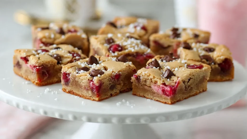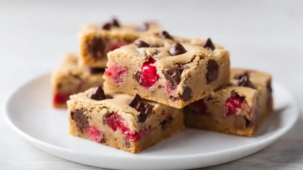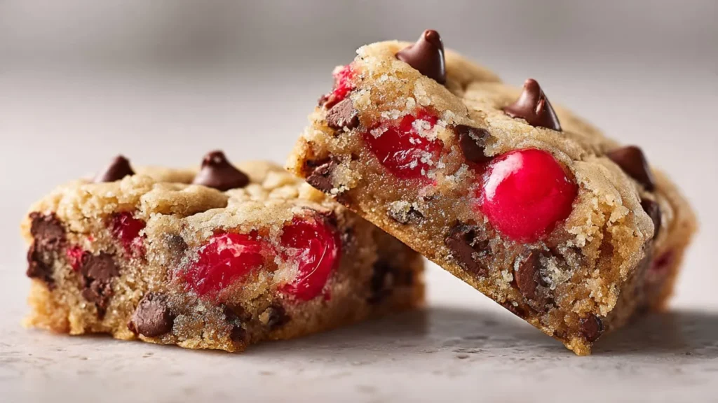 What makes these cookie bars so special is their texture and balance of flavors. The dough bakes up soft and tender, while the cherries add moisture and a subtle fruity sweetness that pairs beautifully with melty chocolate chips. They’re easy to make, easy to slice, and perfect for sharing, making them a favorite for parties, holidays, and everyday treats.