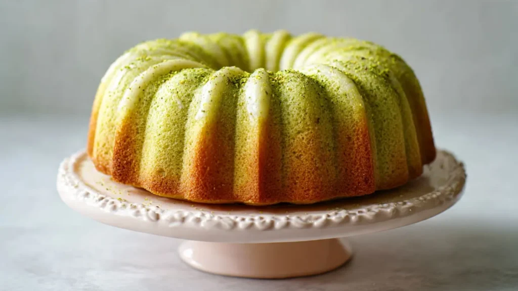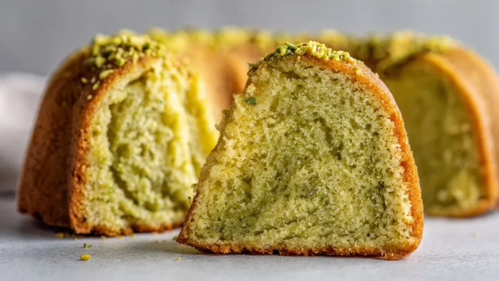 Soft and Moist Pistachio Bundt Cake with Rich Nutty Flavor and Beautiful Green Hue